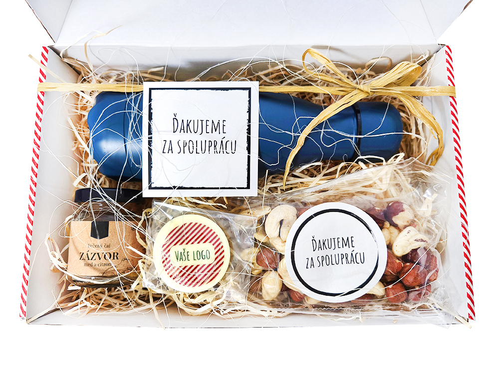 VAŠA KRABICA S POTLAČOU S TERMOHRNČEKOM NÁŠ TIP Celoplošne potlačená krabica s vašou grafikou - či už vianočne, alebo ako "uvítací box" pre nového zamestnanca. V tomto boxe je započítaná potlač termoskovej fľašky. Okrem nej sme pridali chutné delikatesy, ktoré potešia vašich zamestnancov či obchodných partnerov. 20,00 € (bez DPH) Rýchla objednávka Chcem poradiť Potlač: tento predmet vieme potlačiť Vaším logom. Ohľadne ceny a technológie potlače, vrátane grafického návrhu s Vaším logom/textom nám prosím pošlite dopyt na info@darcekyprefirmy.sk Informácie o VAŠA KRABICA S POTLAČOU S TERMOHRNČEKOM termosková fľaša z nerezovej ocele, netečie, objem 0,26l, vákuovo izol., udrží teplé nápoje 5 hod, studené 15 hod. zmes orechov 80gr (mandle, lieskovce, kešu) čokokrúžok 8gr, 5cm, posýpka, s Vaším logom med+zázvor+citrón, 60ml, sklo celoplošne potlačená krabička vo Vašom dizajne, kartička vnútri Viac obrázkov a popis termoskovej fľaše nájdete na tomto linku Pri vyšších odberoch individuálna zľava. Vyžiadajte si ponuku. Pre nižší ako min. odber platia upravené ceny (informujte sa). DARCEKYPREFIRMY_komplimentky_vzorkovnik_2025Objednávka krok po kroku Polia označené * sú povinné a musia byť vyplnené. Meno a Priezvisko (povinné pole) Firma (povinné pole) Email (povinné pole) Telefón Predpokladané odberné množstvo Správa (povinné pole) Odoslaním formulára súhlasíte so spracovaním osobných údajov Odoslať Odoslať Polia označené * sú povinné a musia byť vyplnené. Meno a Priezvisko (povinné pole) Firma (povinné pole) Email (povinné pole) Telefón Správa (povinné pole) Odoslaním formulára súhlasíte so spracovaním osobných údajov Odoslať Odoslať Mohlo by vás zaujímať Predchádzajúci slajd Následujúci slajd MIKULÁŠ PLAY 13,50 € (cena bez DPH) RUKAVIČKA SET 11,00 € (cena bez DPH) NOVINKA 2025 KOŠÍK SLOVENSKÝCH POKLADOV 18,90 € (cena bez DPH)